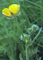 Creeping buttercup – creeps, furrowed hairy stalk, upright sepals